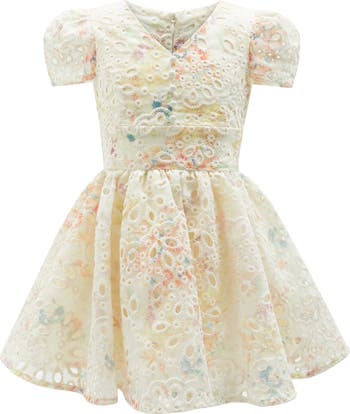 Embroidered details decorate a colorful dress in a fit-and-flare silhouette your child will love taking a twirl in.