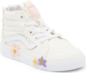 Flowers freshen the midsole of this this kid-sized skate sneaker outfitted with an easy-on back zipper and Vans's signature waffle-tread sole.