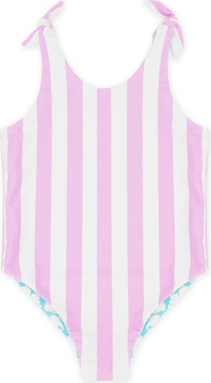 This fast-drying swimsuit made with UPF 50+ sun protection can be flipped from flowers to stripes depending on their mood.