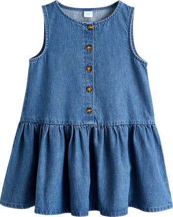 Easygoing denim meets playful charm in this sleeveless cotton dress finished with a button-front bodice and a twirl-ready skirt made for style-minded kids who can't resist a spin.