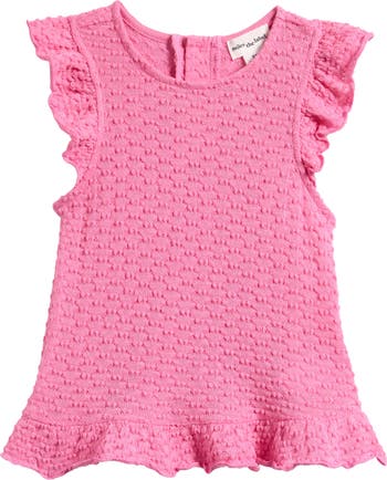 Your tiny trendsetter is ready to make an entrance in this ruffle-trim top made from an easy-moving, flexible organic-cotton blend in a puckery texture.