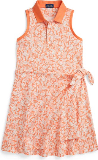 They'll be feeling breezy in this stretch-cotton mesh shirtdress made with a faux-wrap detail and a tropical pattern.