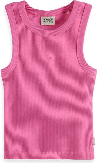 With cutaway shoulders and a rosy-pink hue, this ribbed stretch-cotton tank is sure to be at the front of your kid's closet on hot days.