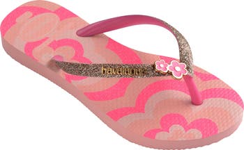A glittering strap adds all kinds of dazzle to a water-resistant flip-flop made to capture the light.