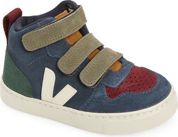 Tiny feet will stay comfortable from the playground to the park in a mid-top sneaker crafted with a luxe leather upper in a colorblocked design.
