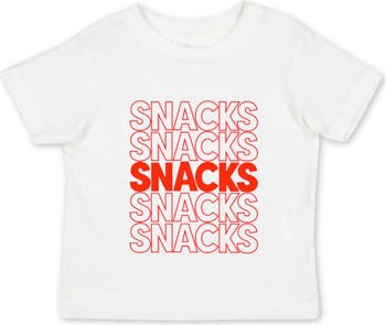 Your snack loving kiddo is sure to snack away in this cheeky SNACKS tee.