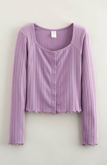 Stretchy ribbing offers texture to their look in this cotton top outlined in lettuce-edge detailing.
