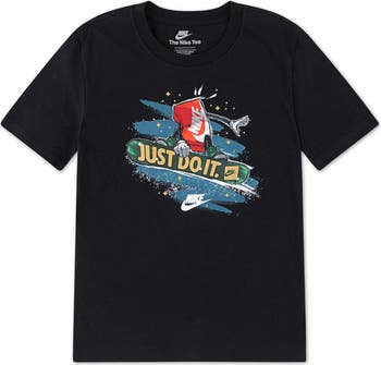 Boxy the Nike shoebox soars over the slopes on a Just Do It snowboard to bring cold-weather cool to a T-shirt made for kids who like to ride and relax in the comfort of cotton-blend jersey. Perfect for playtime, downtime and every time in between, it's a great addition to any active wardrobe.
