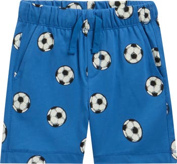 Your little kicker will love comfy cotton shorts covered in a sporty soccer ball print.
