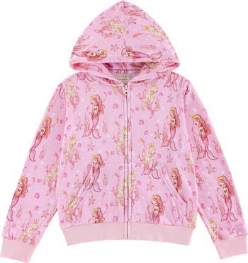 An enchanting print of mermaid royalty brings under-the-sea energy to the plush comfort of this zip-up hoodie sized for kids who like to play and relax in the softness of cotton-blend fleece. Perfect for busy days and cozy nights, it makes a great addition to any youngster's wardrobe.