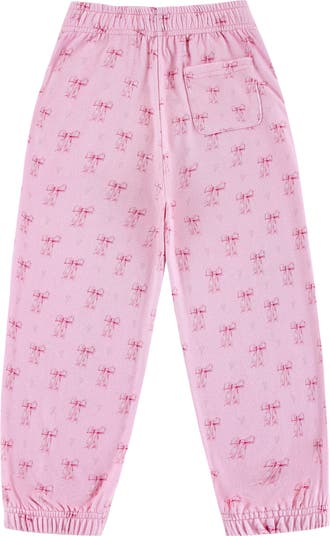An enchanting print of dainty bows brings a cuteness overload to the plush comfort of these joggers sized for kids who like to play and relax in the softness of cotton-blend fleece. Perfect for busy days and cozy nights, it makes a great addition to any youngster's wardrobe.