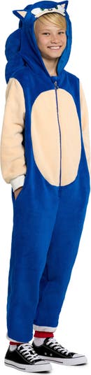 Sonic the Hedgehog inspires and brings energy to this one-piece hooded jumpsuit that's great for Halloween or just hanging out on the sofa.