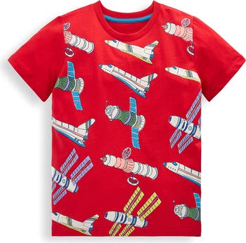 Fleets of spacecraft and colorful satellites inspire a universe of imagination in a T-shirt made for kids who like to soar or sit quietly in the comfort of breathable cotton. Perfect for playtime, down time and every time in between, it makes a great addition to any young dreamer's wardrobe.