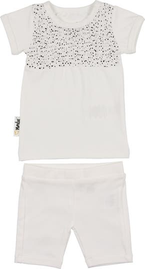 Speckled smocking adds a twist of texture to the top of this stretchy cotton set made just for kiddos.