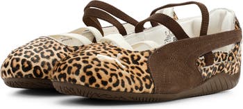 Leopard-spotted genuine calf hair inspires a sense of adventure and an urge to prowl in a kid-size sneaker that pairs a ballet-inspired silhouette with the low, streamlined profile of a racing shoe. A quilted Formstrip floating against the open side and a PUMA Cat embroidered on the toe keep the pedal to the floor for a fan-favorite win.