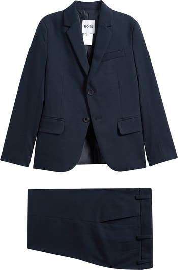 Your dapper kiddo is ready to take on their next special occasion with this suiting-style set featuring a tailored sport coat and matching tapered-leg pants.