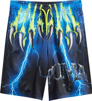 Your active kiddo is ready to take on team practice or just the couch in the lightweight comfort of these mesh shorts covered with bold logo artwork.