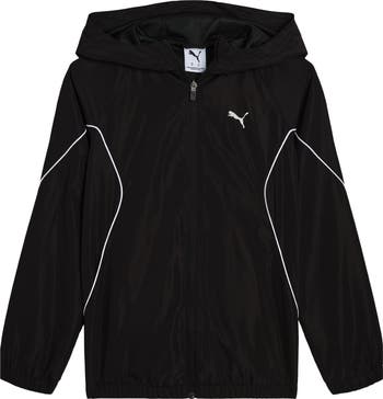 This sporty windbreaker with a mesh-lined hood and spacious side pockets is sure to be a layering favorite.