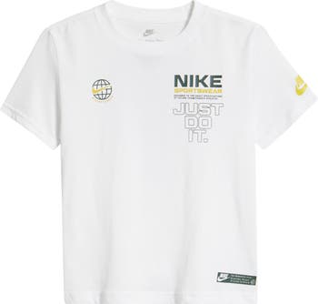 Soft, breathable cotton enhances the everyday comfort of a T-shirt that's sized for kids designed with a bold Just Do It spirit. Perfect for playtime, downtime and every time in between, it makes a great addition to any active wardrobe.