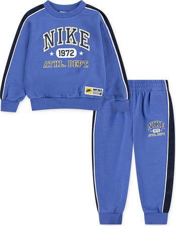 A French terry cotton blend keeps your active little one covered and comfy in this sweatshirt and joggers set featuring puff-print athletic graphics.