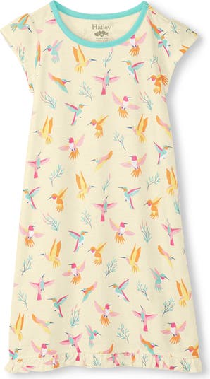 Sweet dreams and leisurely lounge seshes await your kiddo in this ruffled nightgown cut from soft, breathable jersey in a colorful print that turns any night into a fun slumber party.