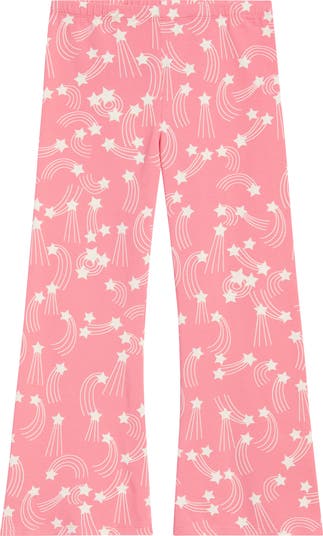 Flared legs give a fashion-forward look to printed pants made from breathable organic cotton with a touch of added stretch.