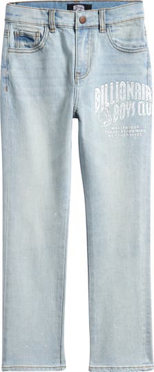 Brand-signature Helmet Head graphics bring intergalactic verve to these kid-sized jeans cut from light-wash denim.