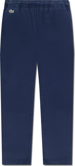 A small croc patch subtly brands these stretch-kissed organic cotton twill pants secured with a drawstring for your kid's comfort.