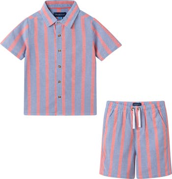 Your kiddo will be picture-perfect in a sweet set that includes a happily striped shirt and a pair of drawstring shorts, all made from soft cotton.