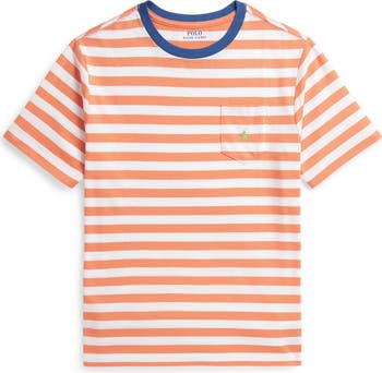 Iconic since its '71 debut, Ralph Lauren's embroidered polo rider hints at the preppy heritage of this kid-sized ringer T-shirt patterned in classic stripes.