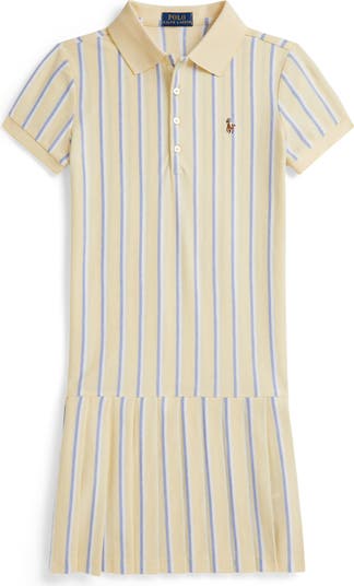 Breathable cotton piqué keeps kids comfy from the classroom to the court in this sporty drop-waist dress with a pleated skirt. Ralph Lauren's embroidered polo rider—iconic since its '71 debut—hints at preppy provenance.