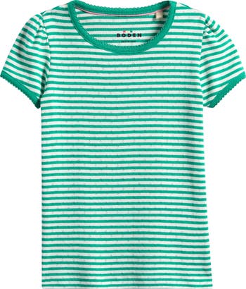 Made of a boldly striped pointelle, this all-cotton T-shirt keeps them feeling comfy no matter what their day brings.