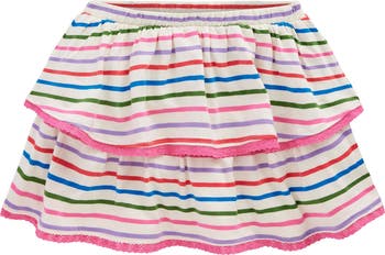 Attached shorts ensure your active kid can move freely in this striped cotton-jersey skort edged in darling crocheted trim and perfect from school days to weekends.