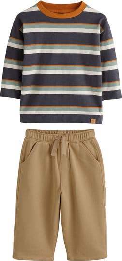 Charming stripes pattern a long-sleeve shirt paired with cozy cotton-blend sweatpants.