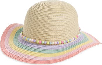 They'll love playing all day in this supercute sun hat with a wide, floppy brim for added sun protection and colorful beads at the crown for added charm.