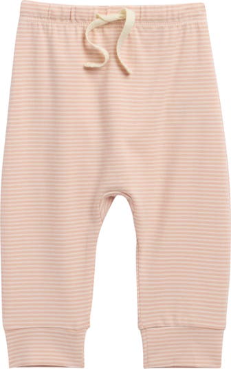 Lightweight organic cotton keeps your little one comfy and cozy in these striped pants topped with an elastic-drawstring waist for an adjustable fit they can move in.