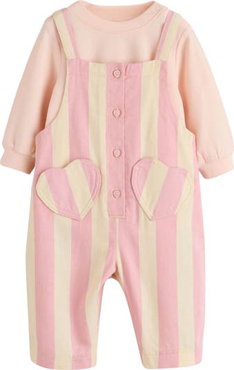 Make hearts flutter when your babe arrives in stripey overalls and a petal pink sweatshirt.
