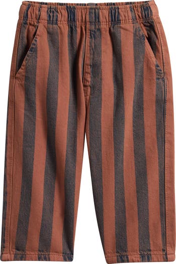 Bold vertical stripes bring big personality to these cotton-twill pants fashioned with a soft elastic waist that keeps things comfy through recess sprints, dance breaks and snack-time lounging.
