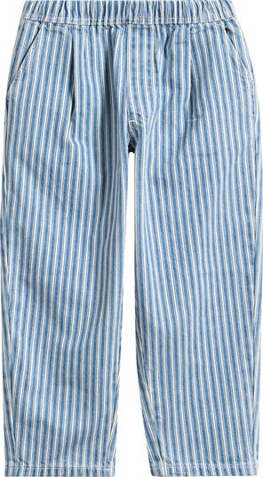 Bold vertical stripes bring big personality to these lightweight cotton pants fashioned with a soft elastic waist that keeps things comfy through recess sprints, dance breaks and snack-time lounging.
