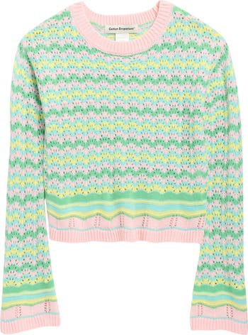 Sweeten sweater season with a cotton-kissed option done in delicate pointelle stitchwork.