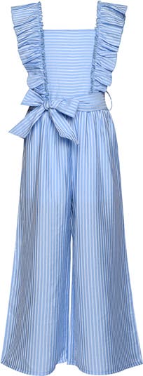 Great to dress up or down, this striped wide-leg jumpsuit elevates your kid's style with textured ruffles and a removable tie belt.