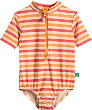 Built-in sun protection is just what they need for safe fun in the sun in this adorable one-piece swimsuit.