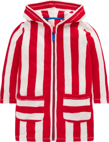Your child will relax comfortably after a day playing in the waves in this hooded cover-up dress made of cotton-rich terry cloth and featuring a full-length zipper and handy pockets.
