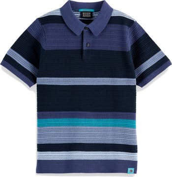 A fine texture breathes life into the stripes of this kid-sized polo that's cut for a relaxation-enhancing fit from soft, breathable cotton that's cool and comfortable all day.