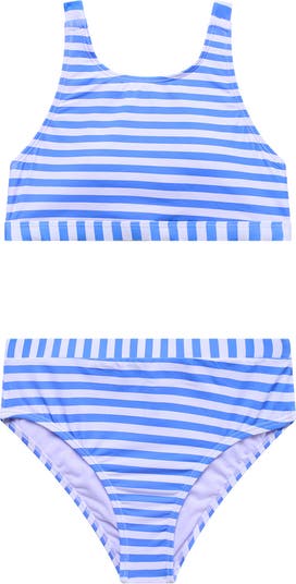 Your kid will love the striped pattern on this two-piece swimsuit make from a quick-drying fabric that is kid approved.
