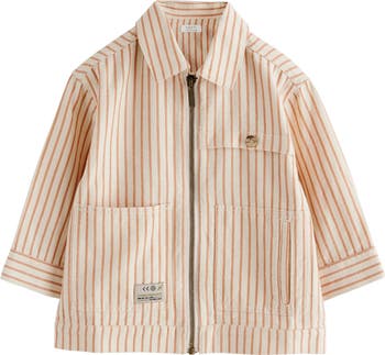 A trio of handy pockets keep all of your kiddo's adventure-day essentials close by with this zip-front overshirt crafted from a breezy, textured blend of cotton and linen.