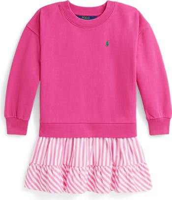 Polo Ralph Lauren Kids' Striped Skirt Cotton Fleece Dress, Alternate, color, College Pink