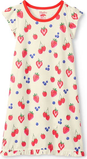 Sweet dreams and leisurely lounge seshes await your kiddo in this ruffled nightgown cut from soft, breathable jersey in a fresh, fruity print that turns any night into a fun slumber party.
