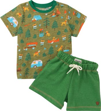 Camping gear and friendly pups invite big adventures in a T-shirt and coordinating shorts made for little ones who like to enjoy their getaways in the comfort of soft, breathable cotton. They work great together and pair separately with other funtime favorites to mix and match for playtime and downtime.
