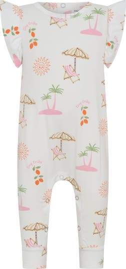 A stretch-enhanced cotton blend keeps your youngster feeling comfortable as they play in this ruffle-trimmed romper.